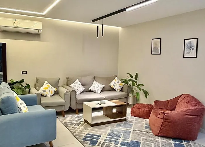 El A Homz 2Br Apartment In Nasr City-One Kattameya El El Cairo está situado a unos 10 minutos en coche del Soly Spa, y a 6 km del Pirámide de Jafra. Este apartamento ofrece instalaciones modernas, como Wi-Fi y servicios esenciales como un aparcamiento para los que viajan en coche.